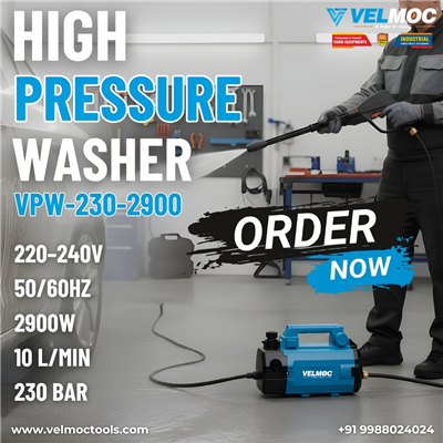 Velmoc Pressure Washer offers 230 BAR pressure, 2900W motor, and 10L/min flow rate for efficient cleaning. Perfect for vehicles, patios, and outdoor spaces, it ensures heavy-duty performance and precise dirt removal, making tough cleaning tasks effortless