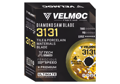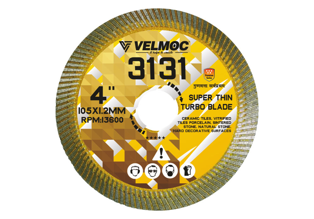 Velmoc 3131 Super Thin Turbo Blade (105 x 1.2MM) delivers precision cutting at 13,600 RPM. Designed for ceramic, vitrified, porcelain, and natural stone tiles, it ensures smooth edges, minimal chipping, and long-lasting performance for professional tile c
